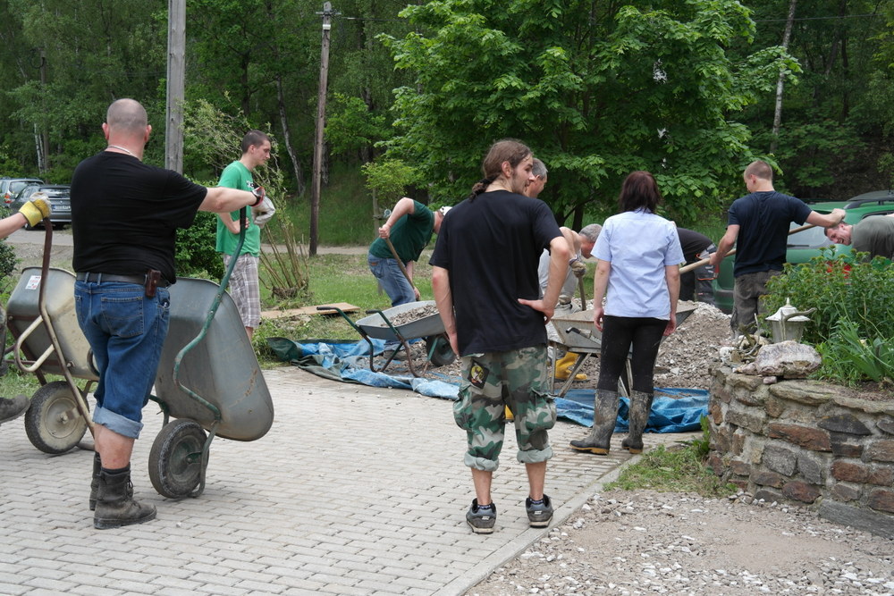 Auf die Wiese hatte es den ganzen Split aus der Einfahrt gespült.