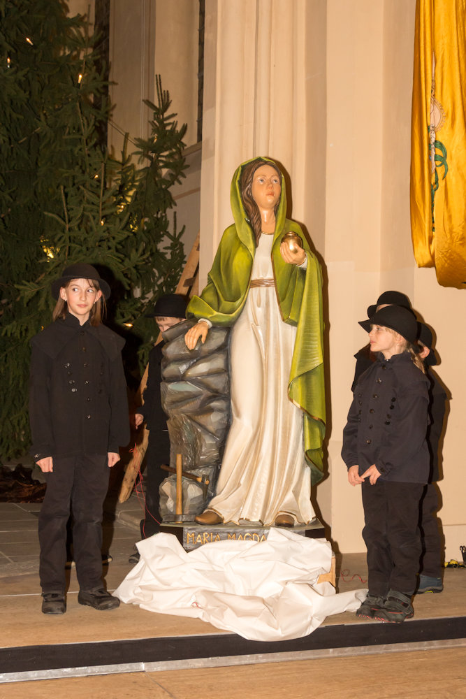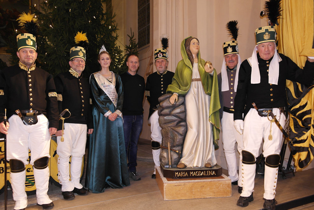 die holzskupltur der maria magdalena mit dem vorstand der bergstadtknigin und dem holzbildhauer friedhelm schelter  foto ines aderhold